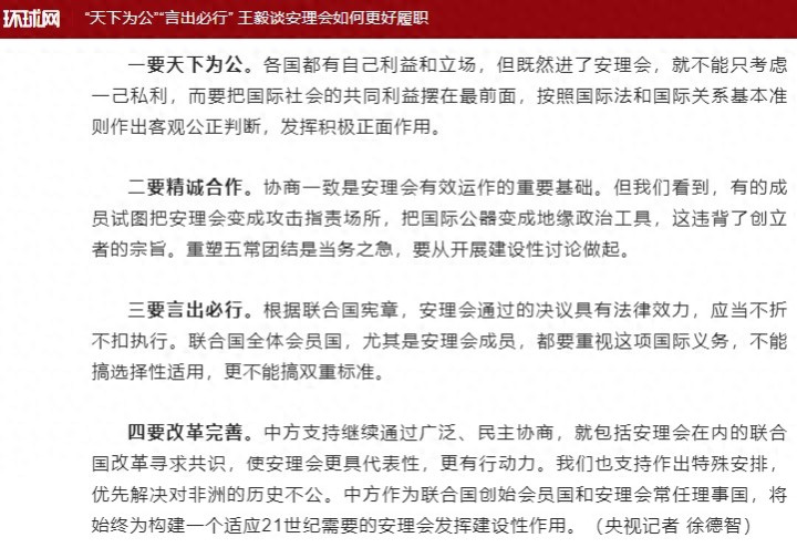 毫不夸张的说,王毅外长的这番论述,可以当作安理会改革的一个完整指南,接下来就应该这么改。